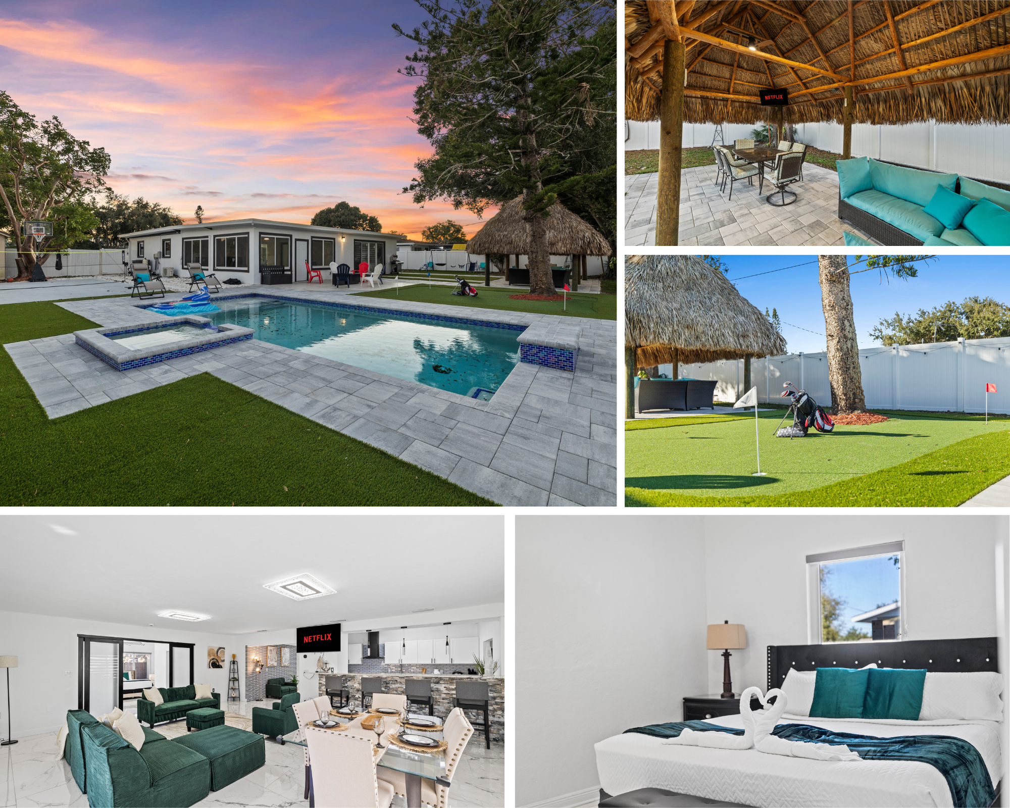 The host was the best ever! The house was amazing. ALL the amenities:pool, hammock, basketball and tennis court, golf, pool table, 70 inch tv, acess to outside from varous rooms. Clean, neat, smelled good, PERFECT!